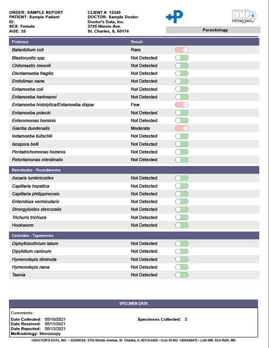 Canadian Citizen Parasitology Lab Test (DDI) (includes interp. and 30 min consultation)